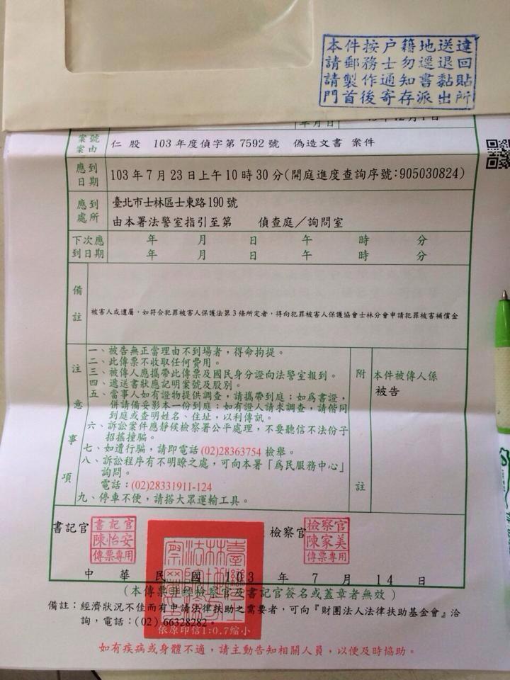針對7/23 民眾參與133的罷免吳育昇案,被告偽造文書,割闌尾聲援新聞稿